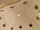 باب المدخل الغربيّ مدمج بإطار من الرخام الزهريّ يعلوه قوس وترس بطغراء تحمل ميزانًا