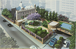 - درابزين يحيط بسطح البناء رباعي القويسات ذو مسنّم