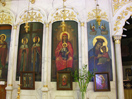 - Iconostase en marbre, garnie de colonnettes, de cartouches et de motifs végétaux (palmettes, branches de vigne, tigettes de roses…) relevés de dorures