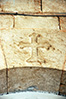 - Narthex en arcades sous un fronton trilobé ouvert par deux baies en segment d’arc surmontées par un œil-de-bœuf et une ouverture en croix